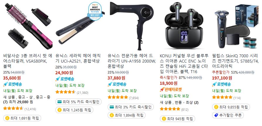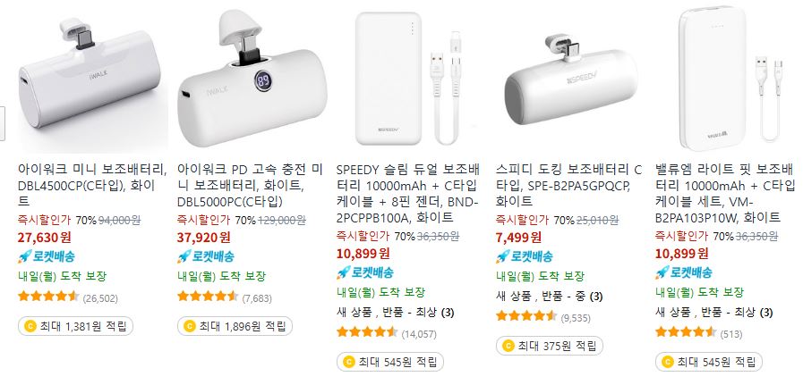 할인 품목 : 보조배터리, 이어폰, 드라이기 등
