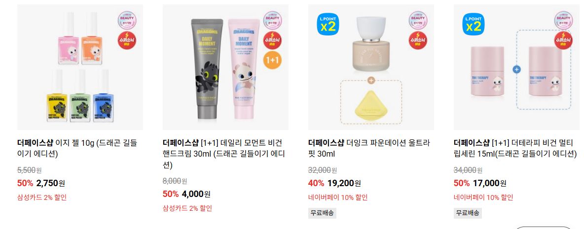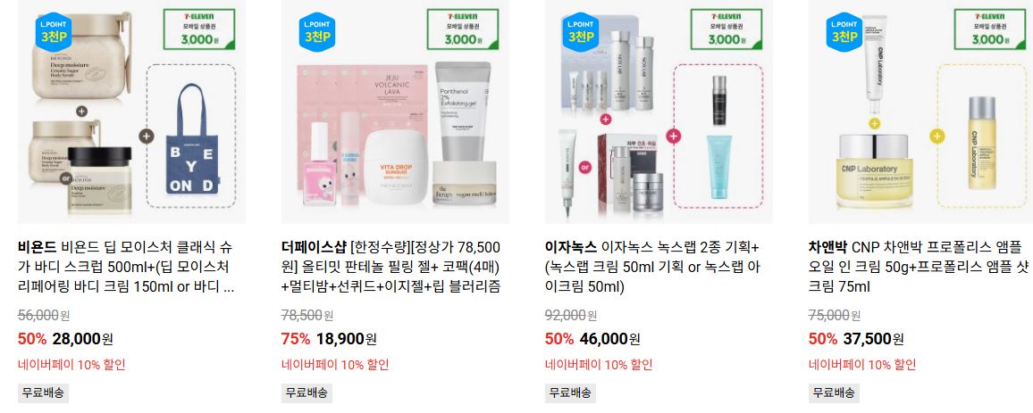 할인 품목 : 샴푸, 선크림, 마스트팩 등