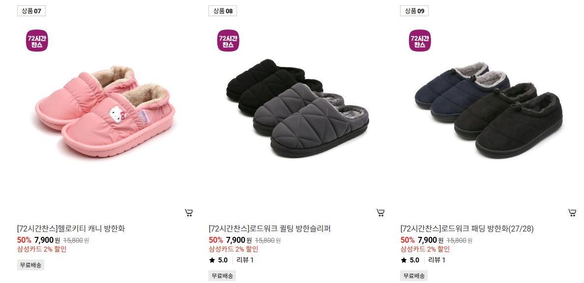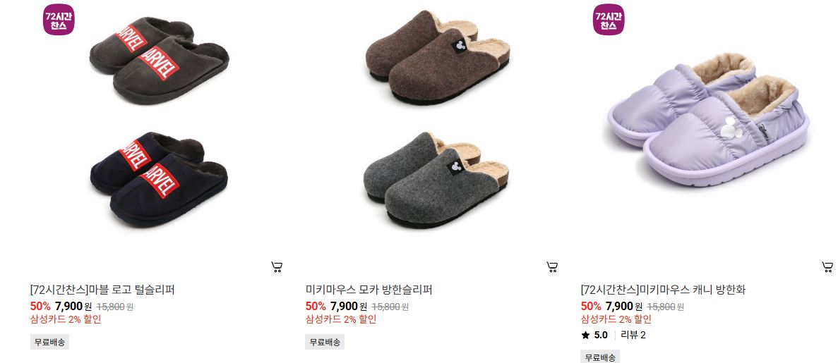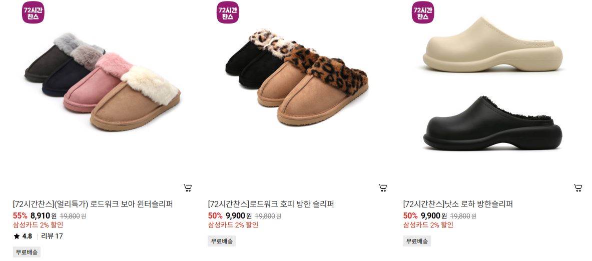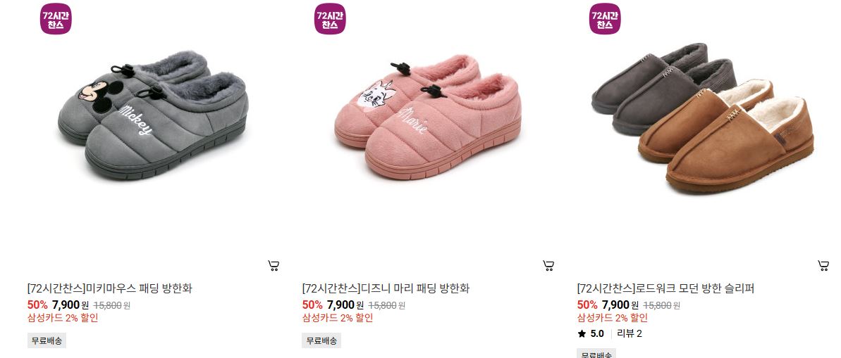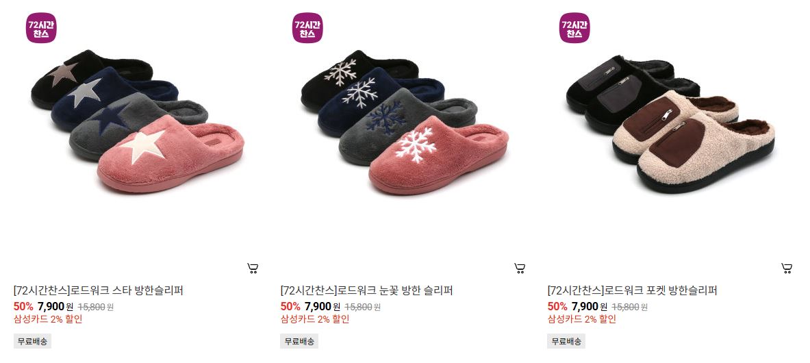 할인 품목 : 슬리퍼, 방한화, 샌들 등