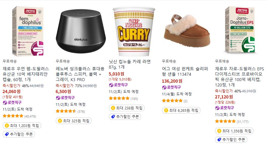 쿠팡 다양한 제품을 할인 판매하네요.