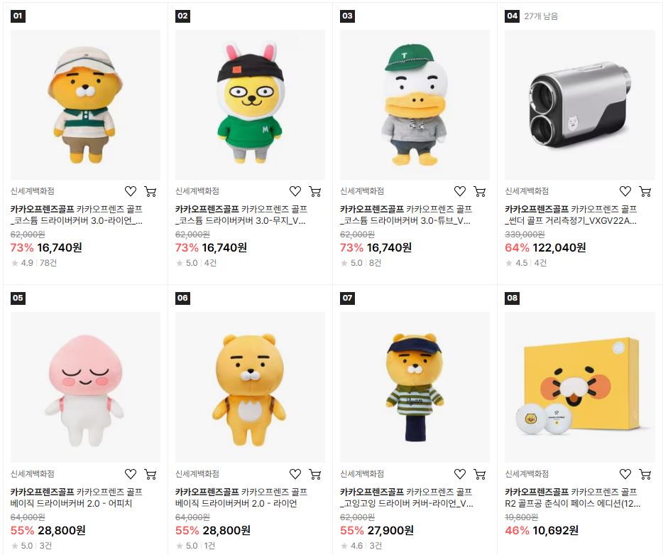 카카오프렌즈 골프 다양한 제품을 할인 판매하네요.