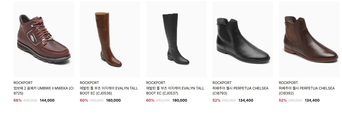 할인 품목 : 운동화, 로퍼, 부츠 등