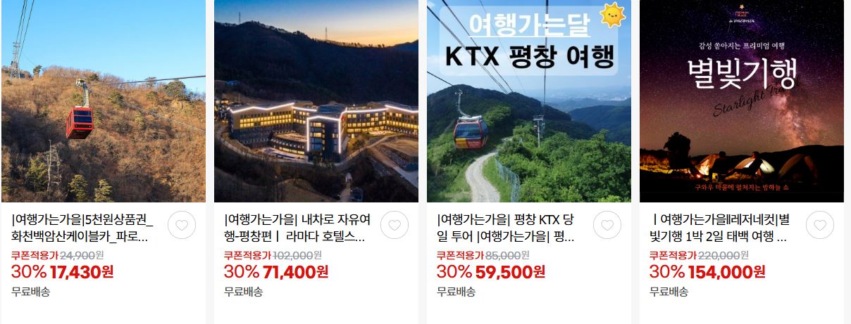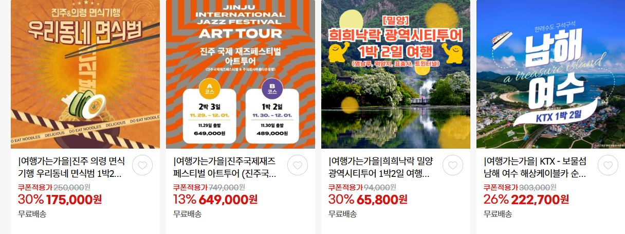 국내여행 다양한 코스를 할인 판매하네요.