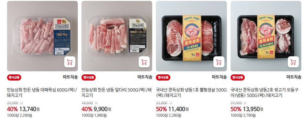 할인 품목 : 삼겹살, 목살 등
