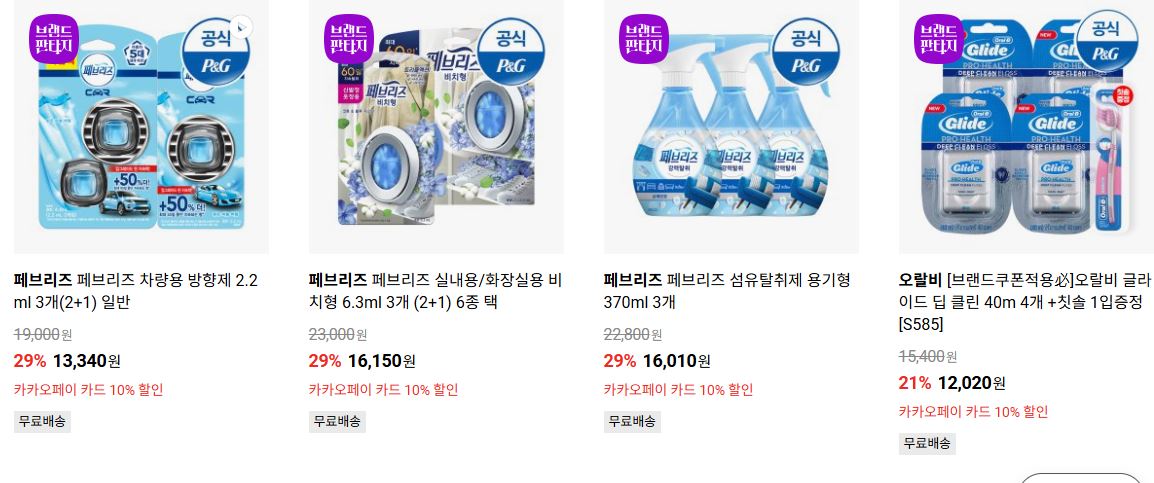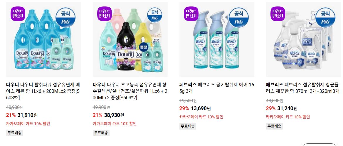 P&G 다양한 제품을 할인 판매하네요.