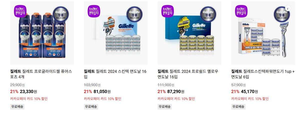 할인 품목 : 면도날, 섬유유연제, 샴푸 등