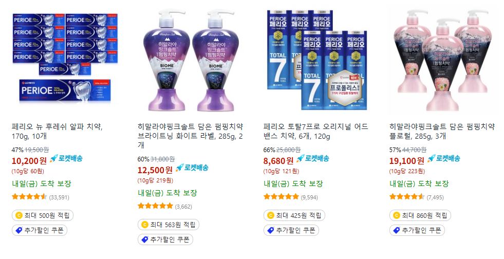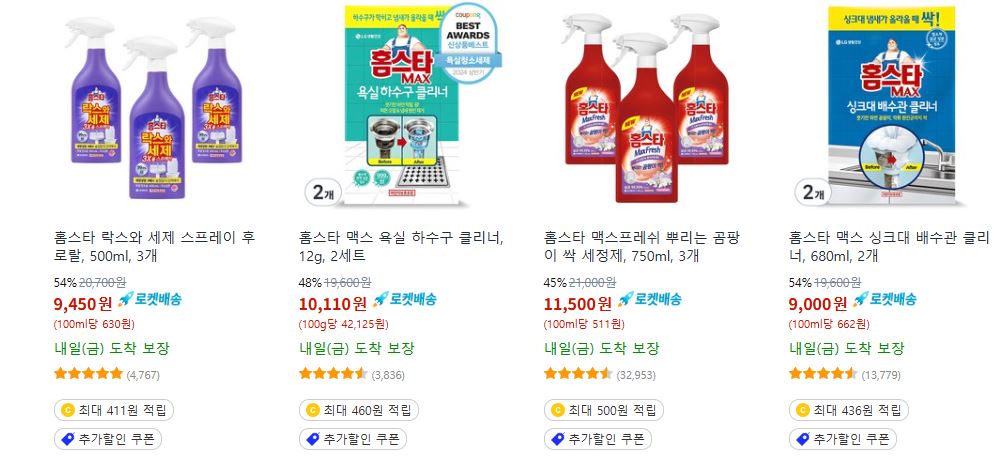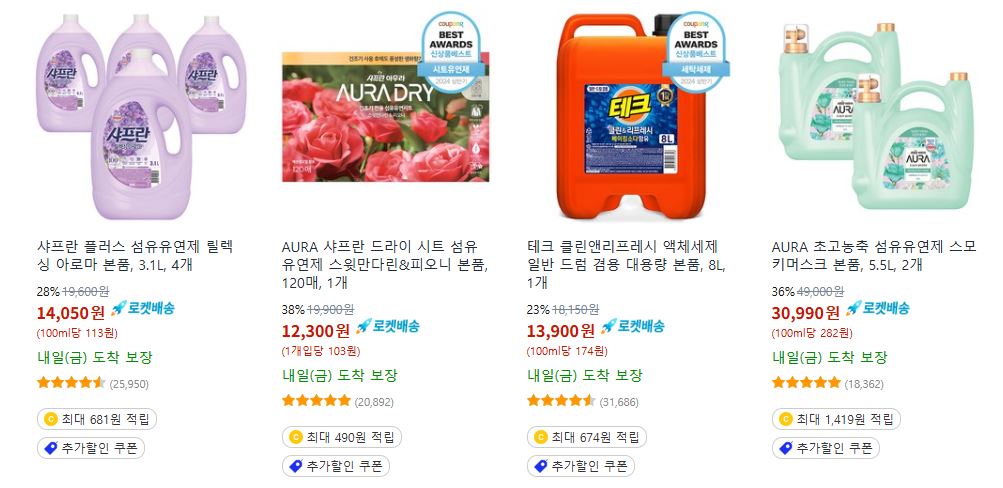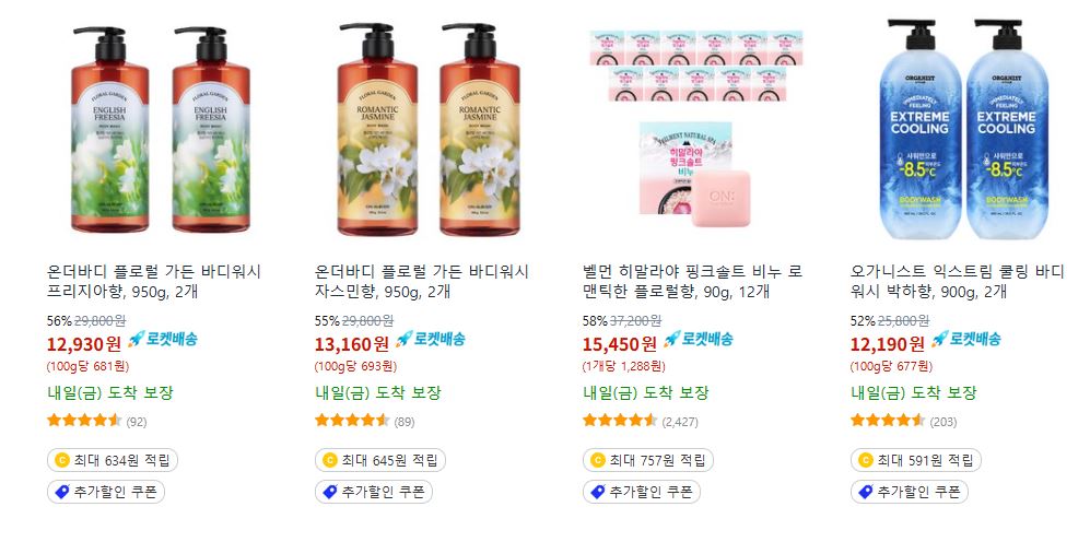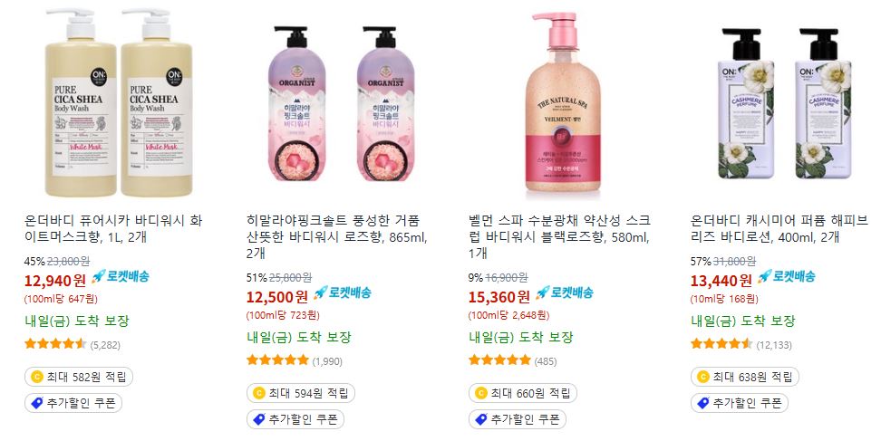 할인 품목 : 샴푸, 세제, 바디워시, 치약 등