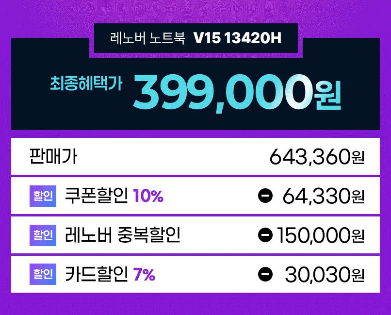 레노버 V15 4세대 인텔 13세대 i5 13420H 8GB 128GB 할인 정보 [링크]