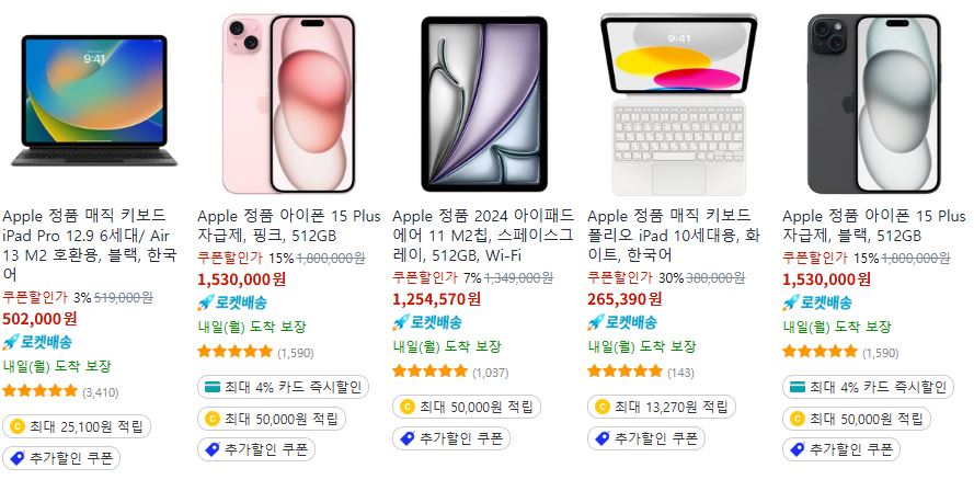 할인 품목 : 휴대폰, 아이패드, 밥솥 등