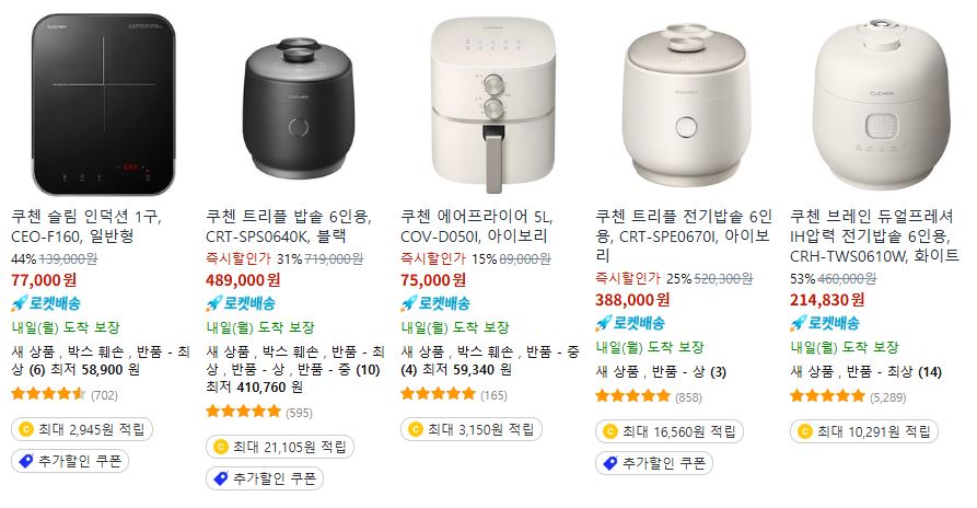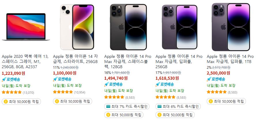 할인 품목 : 휴대폰, 아이패드, 밥솥 등