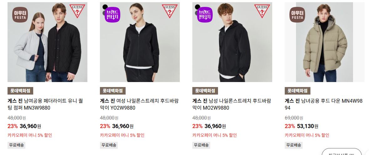 게스 다양한 제품을 할인 판매하네요.
