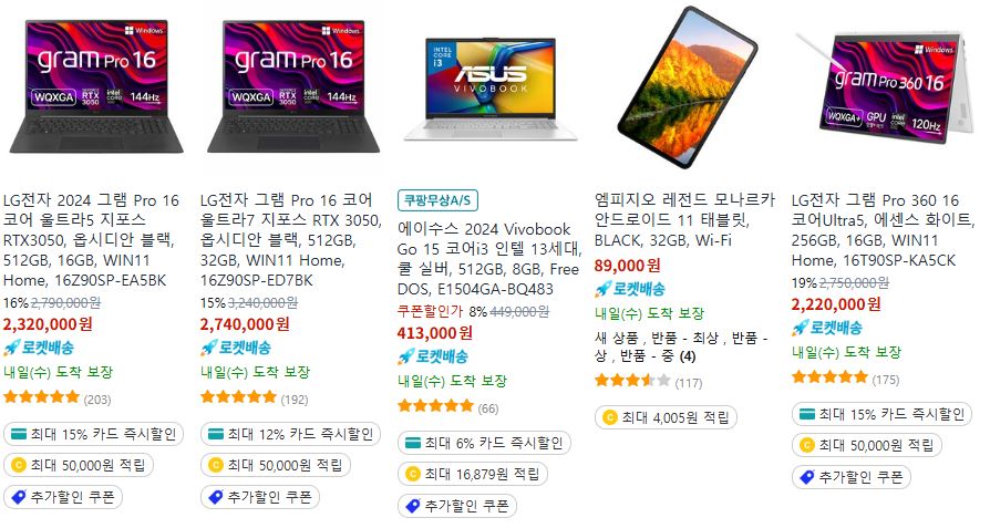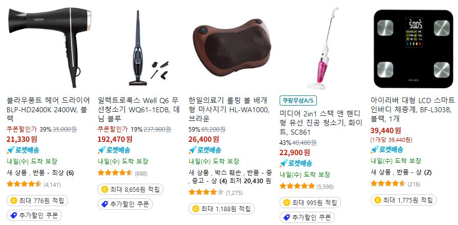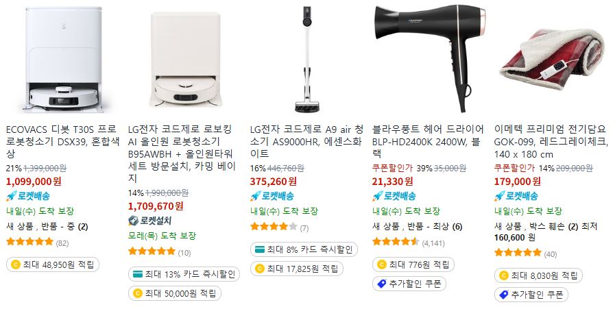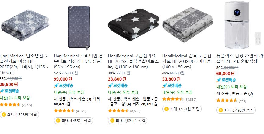 할인 품목 : 보조배터리, 노트북, 전기요 등