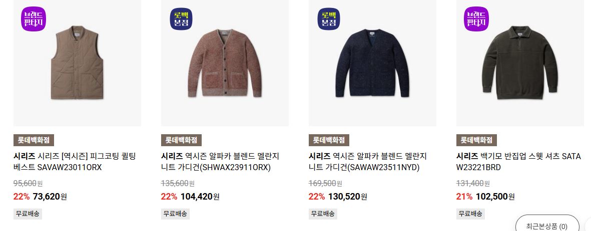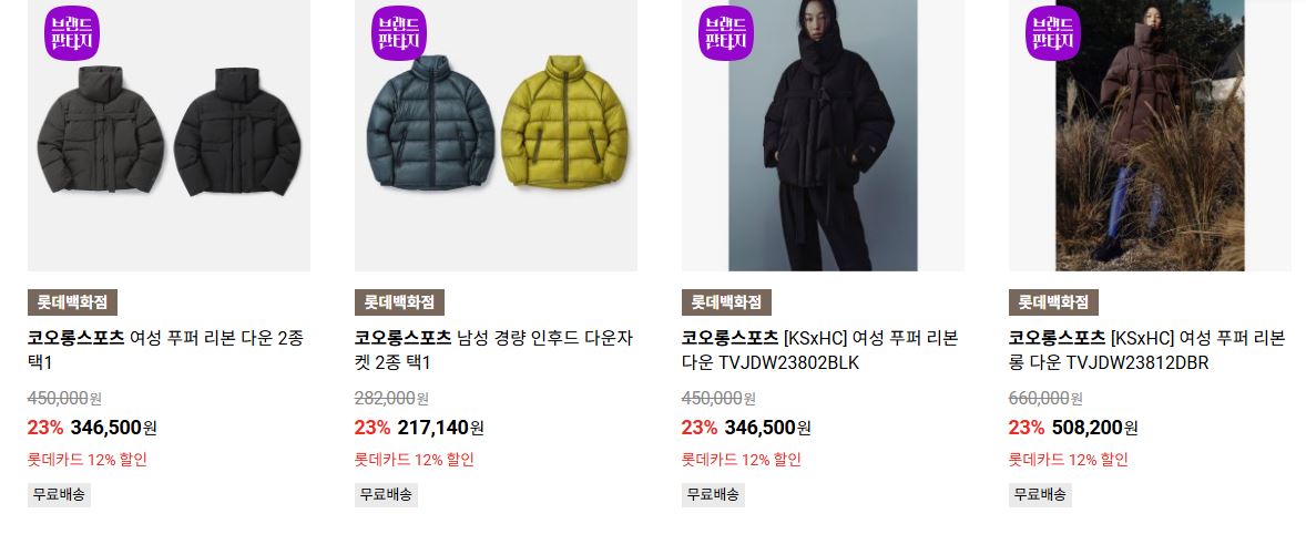 코오롱 다양한 브랜드 제품을 할인 판매하네요.