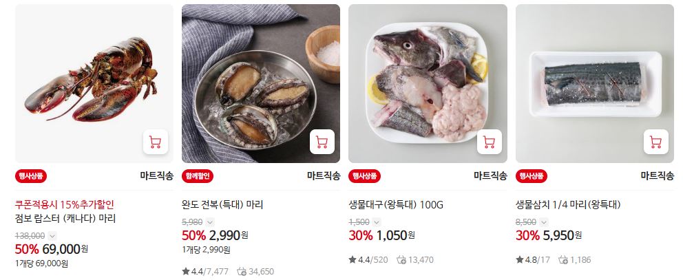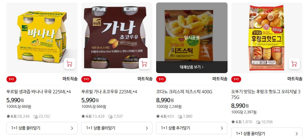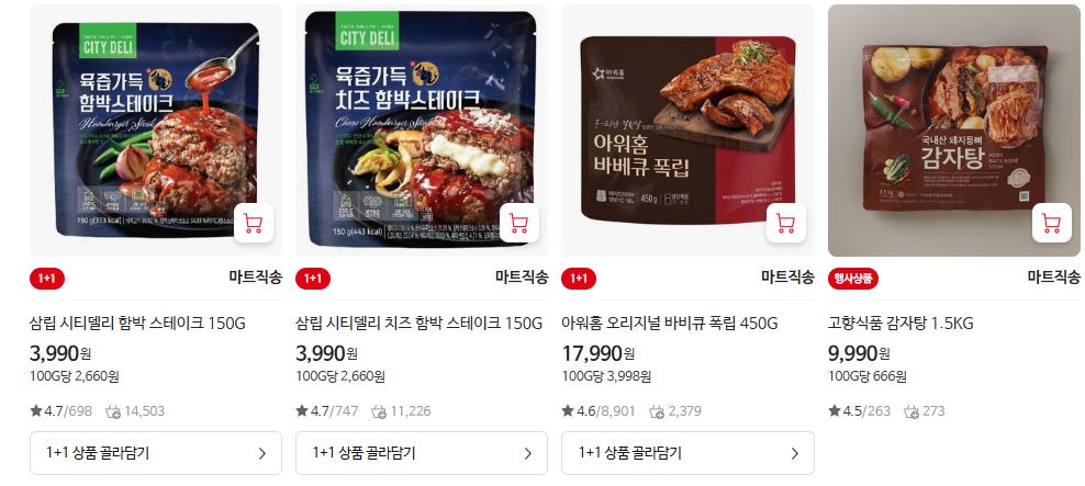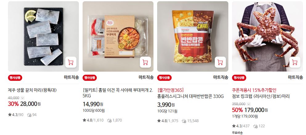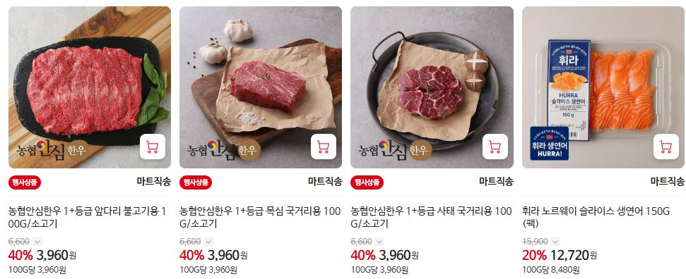 할인 품목 : 우유, 피자, 한우, 라면 등