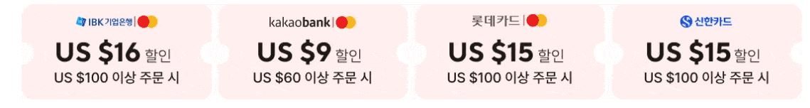 ‒ $100이상 구매 시, $16 자동할인: KB국민 카드, IBK기업 Mastercard