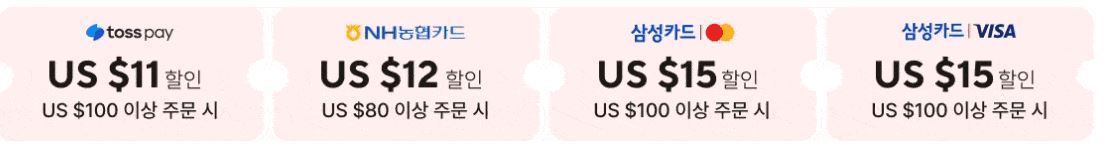 - 89달러 이상 구매 시, 12달러 할인: NOVGGJ12, PPOM10, KRD222, DBEL12, PPOM10, ALICL10