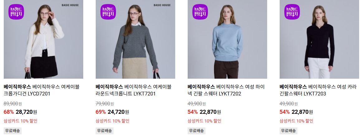 마인드브릿지/베이직하우스 다양한 제품을 할인 판매하네요.