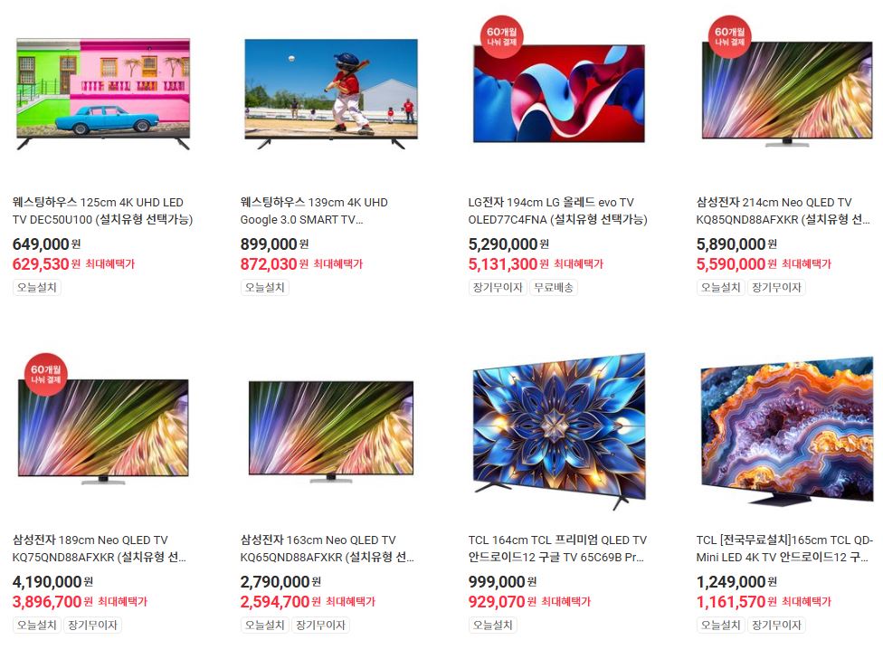 할인 품목 : TV, 키보드, 테블릿, 노트북 등