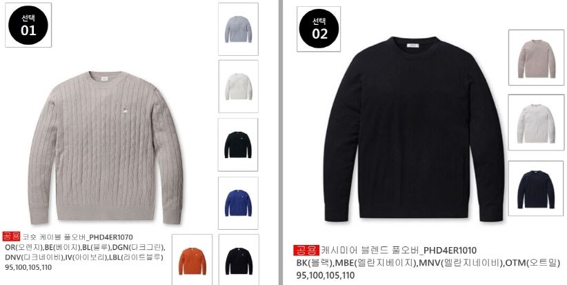 폴햄 공용 니트류 5종을 할인 판매하네요.