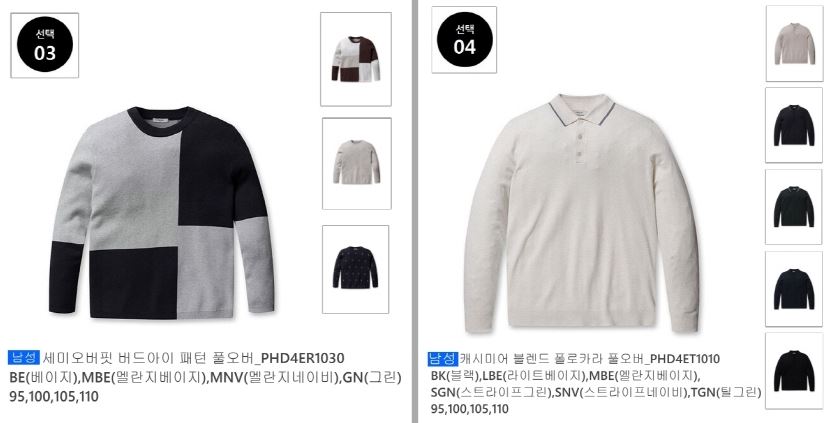 폴햄 공용 니트류 5종을 할인 판매하네요.