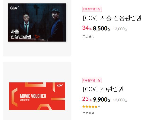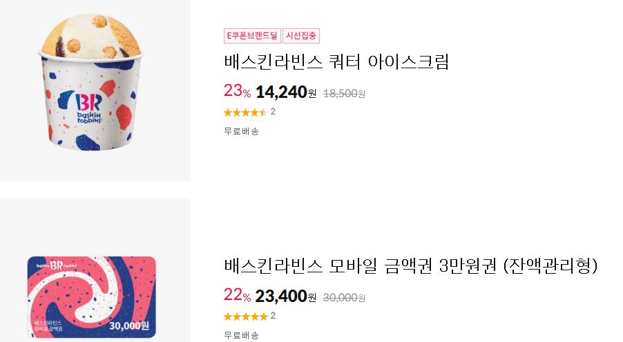 할인 브랜드 : 배스킨라빈스, 디저트39, CGV 등