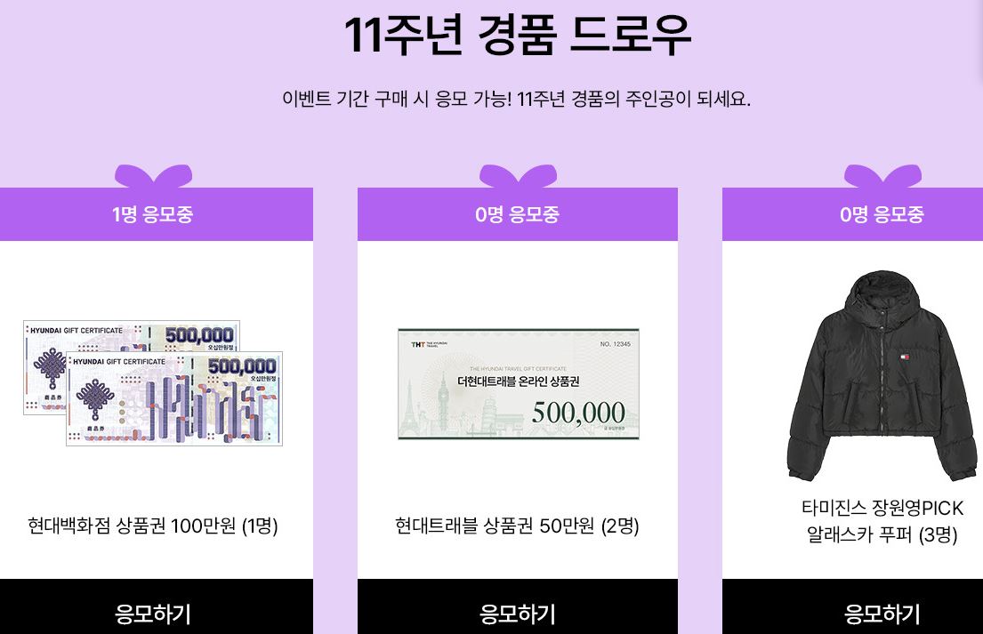 H패션몰 11주년 기념 이벤트를 진행하네요.