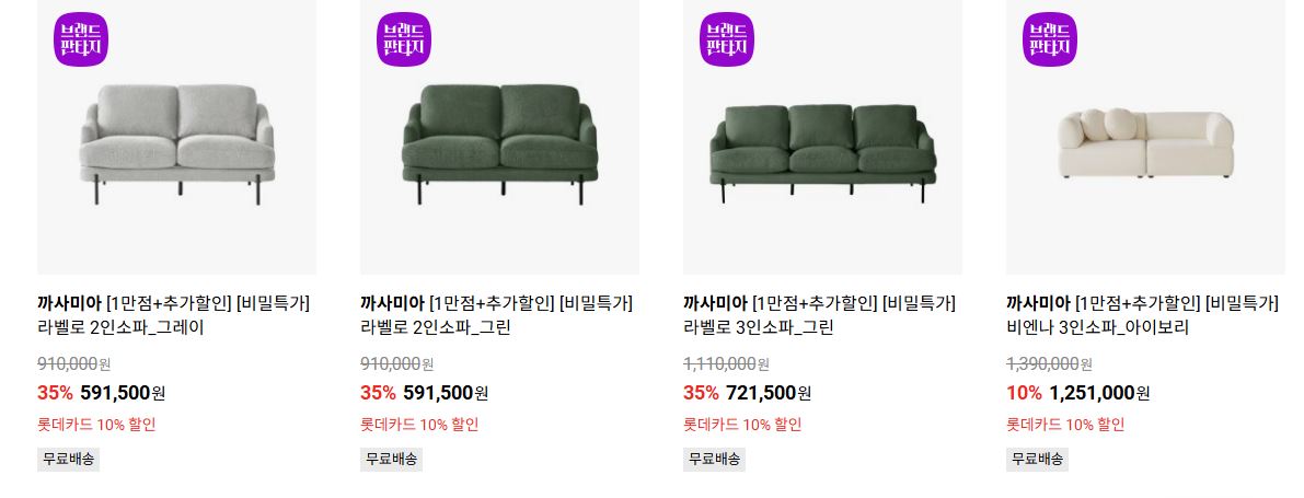 할인 품목 : 소파, 식탁, 서랍장 등