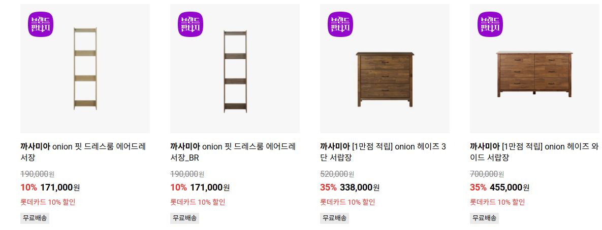 할인 품목 : 소파, 식탁, 서랍장 등