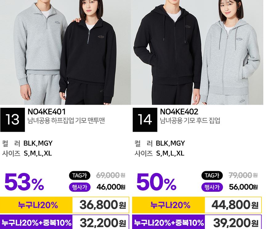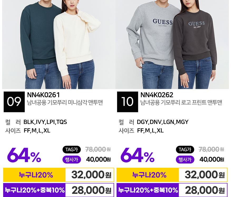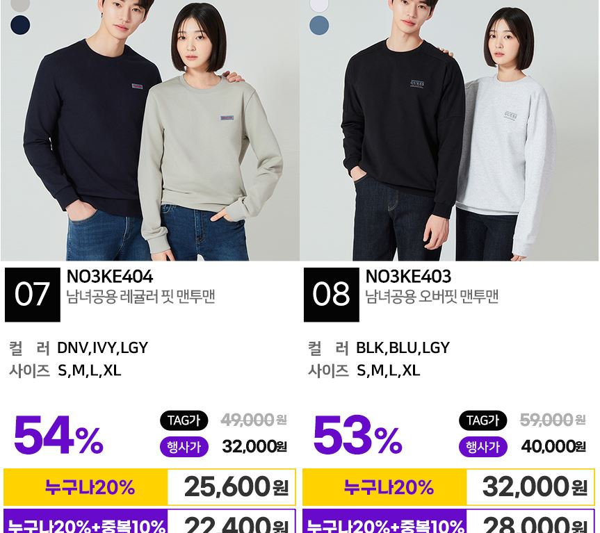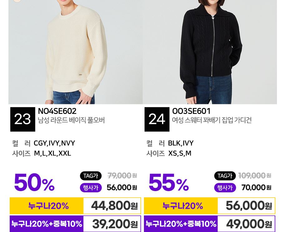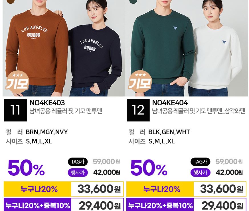 할인 품목 : 점퍼, 맨투맨, 팬츠 등