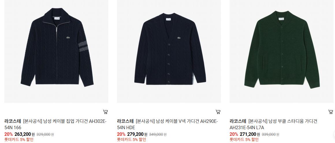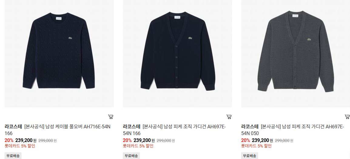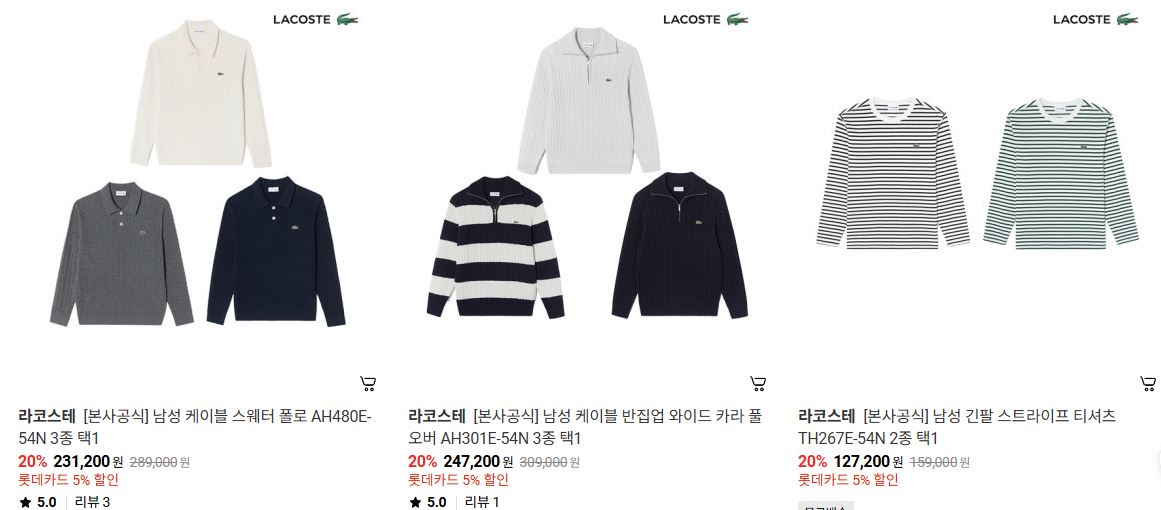 라코스테 다양한 제품을 할인 판매하네요.