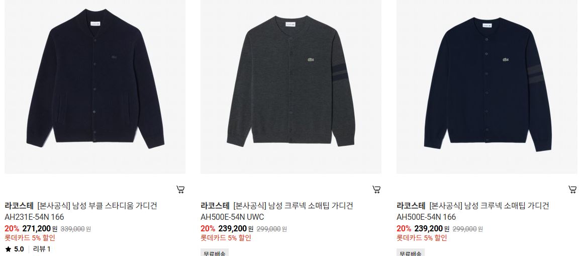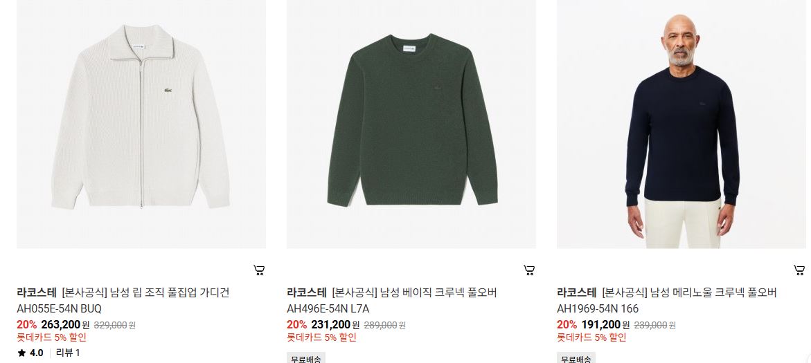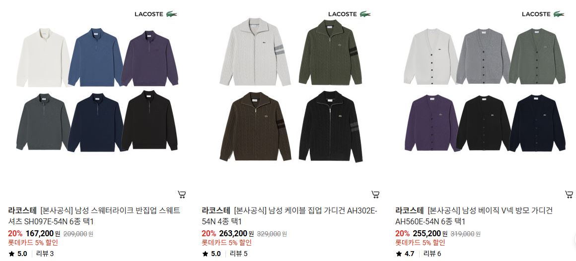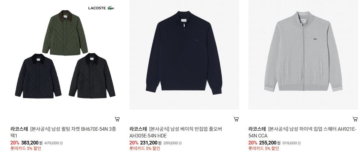 라코스테 다양한 제품을 할인 판매하네요.