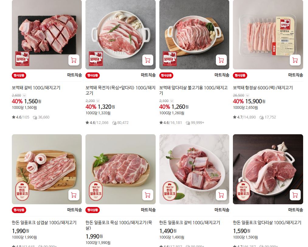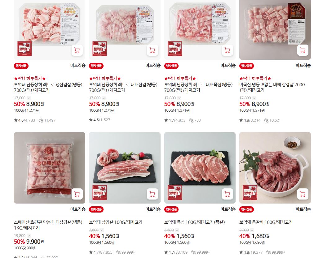 할인 품목 : 삼겹살, 목심 등