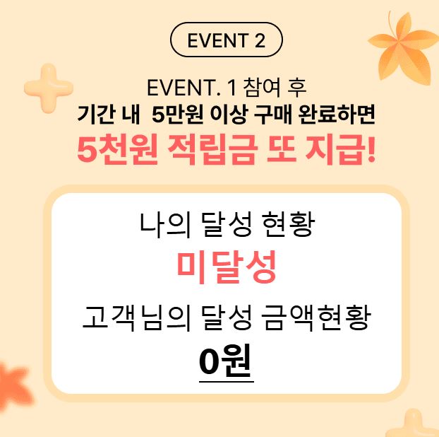 이벤트 참여 후 5만원 이상 구매하면 5천원 적립