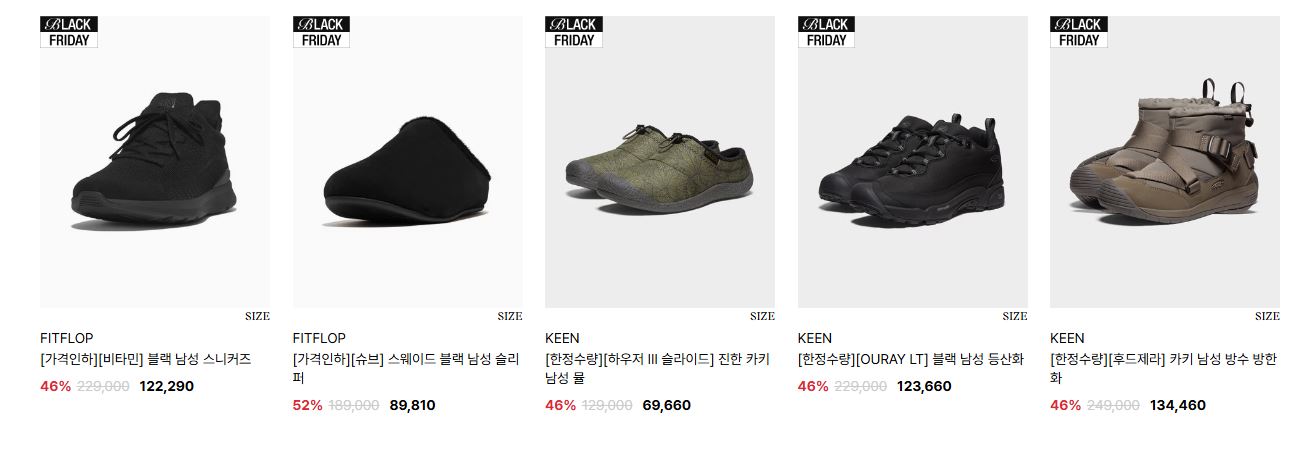 할인 품목 : 운동화, 구두, 부츠 등