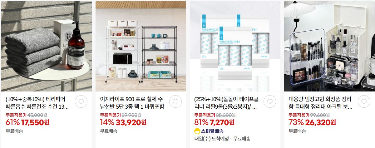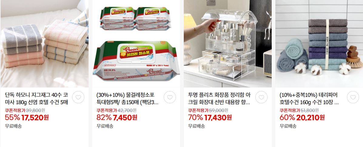 할인 품목 : 휴지, 식기, 화장품 등