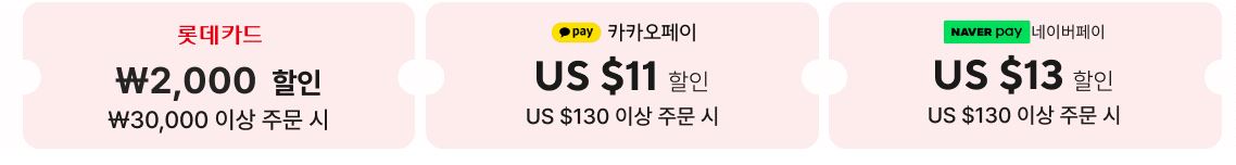- $130이상 구매 시, $11 즉시 할인: 카카오페이