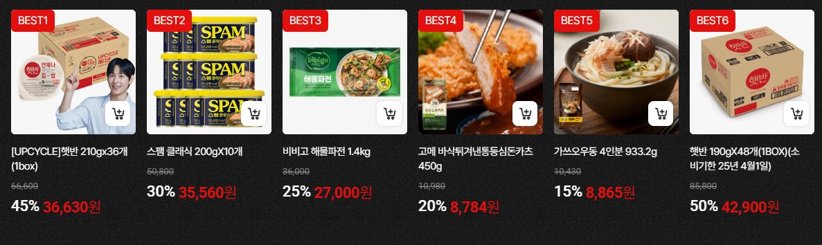 할인 품목 : 만두, 스팸, 치킨, 함박스테이크 등
