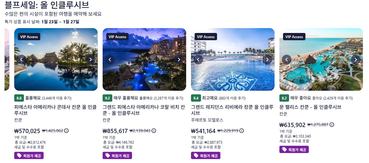 할인 지역 : 서울, 파리, 런던, 칸쿤, 타이페이 등