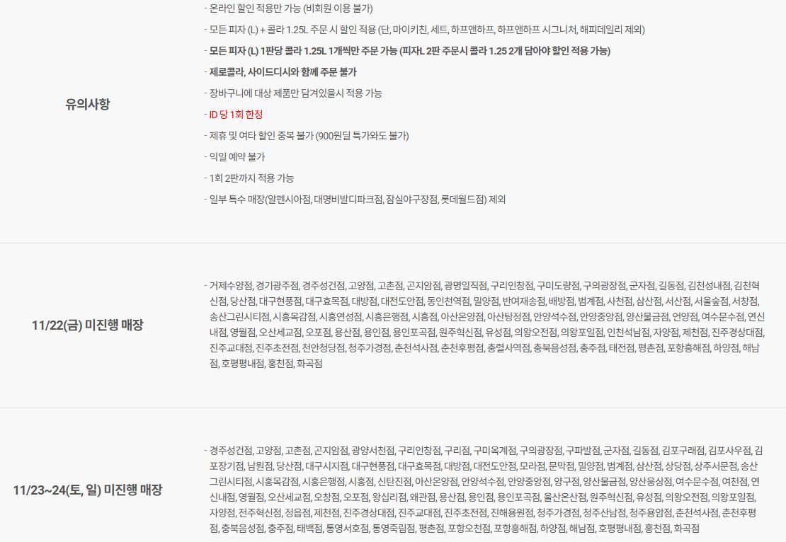 할인 품목 : 모든 피자+ 콜라 1.25L