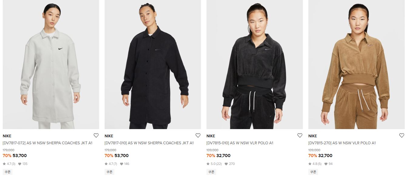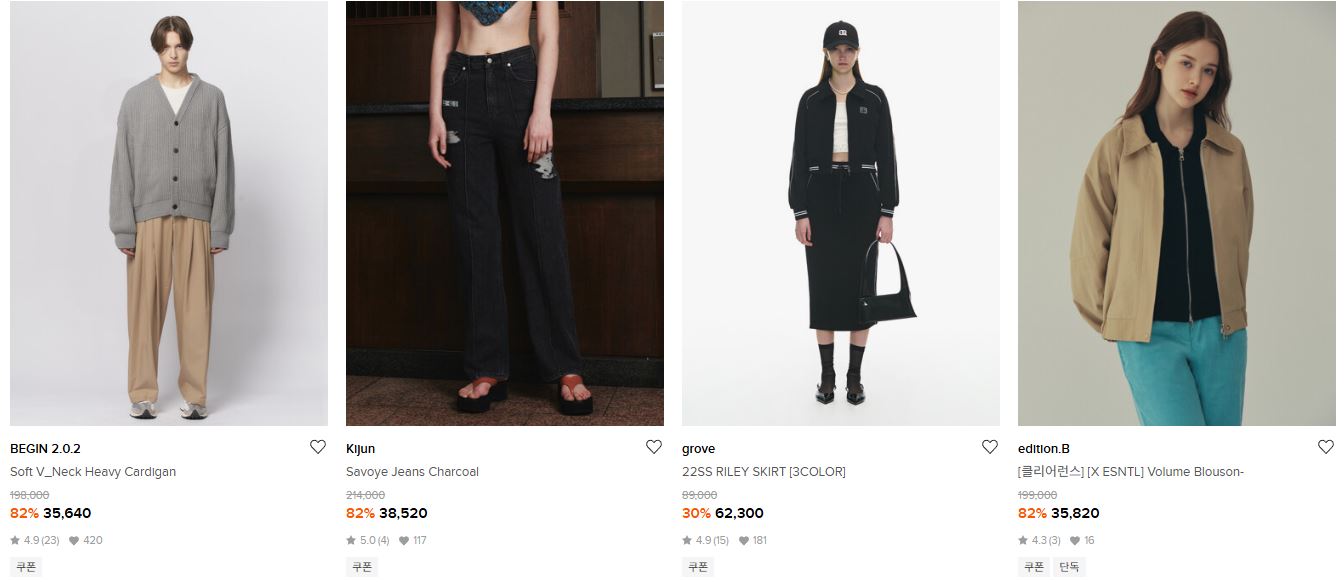 할인 품목 : 의류, 신발, 가방 등
