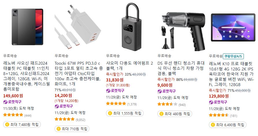 쿠팡 다양한 제품을 할인 판매하네요.