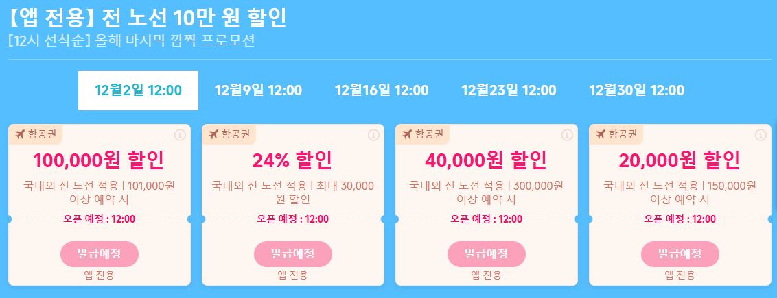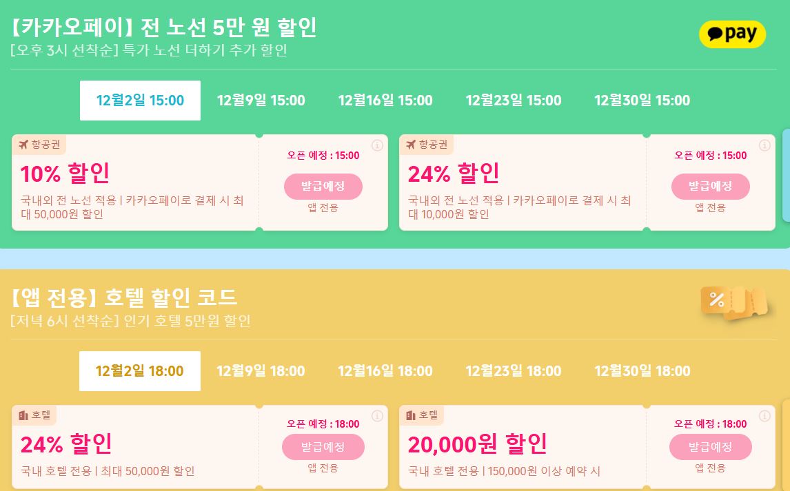 할인 품목 : 항공권, 숙박권, 티켓 등