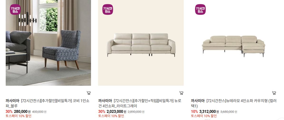 까사미아 다양한 제품을 할인 판매하네요.