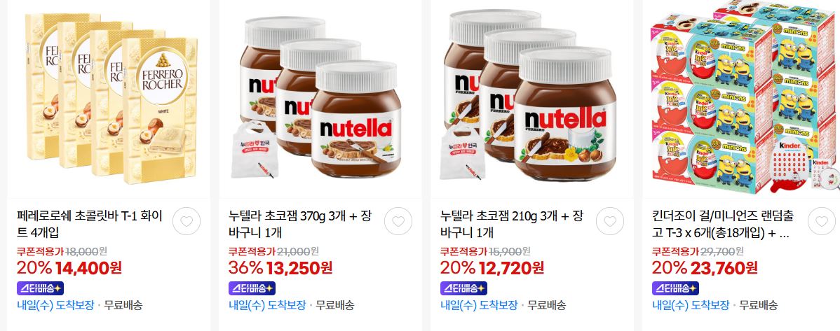 할인 품목 : 초콜릿, 초코잼, 음료 등