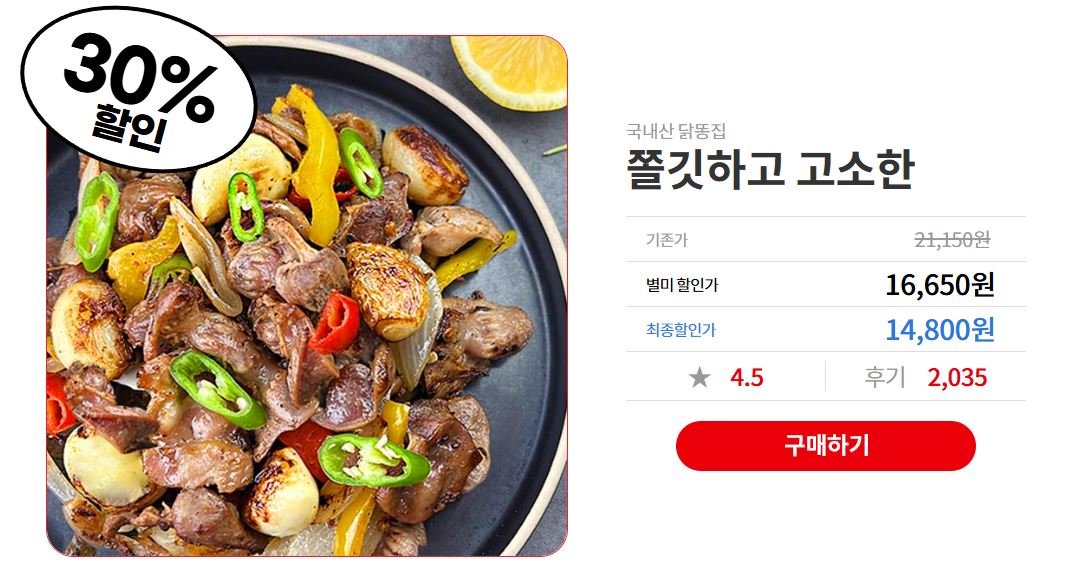 옥션별미 국내산 닭똥집 230g x 10봉 할인 정보 [링크]