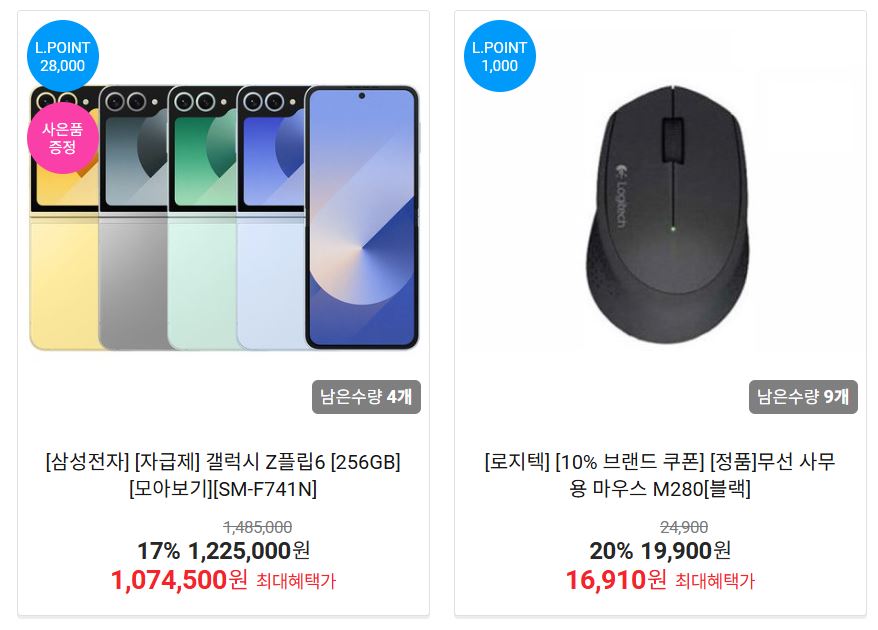 할인 품목 : 노트북, 게임기, 마우스 등