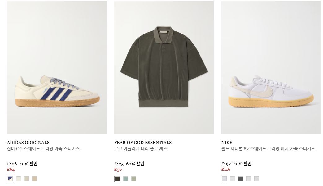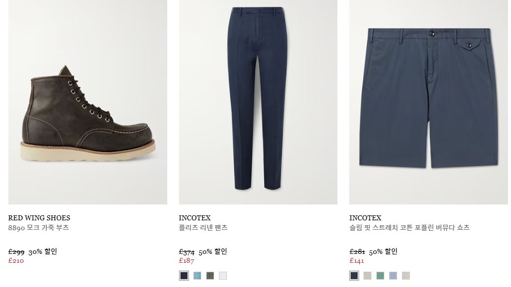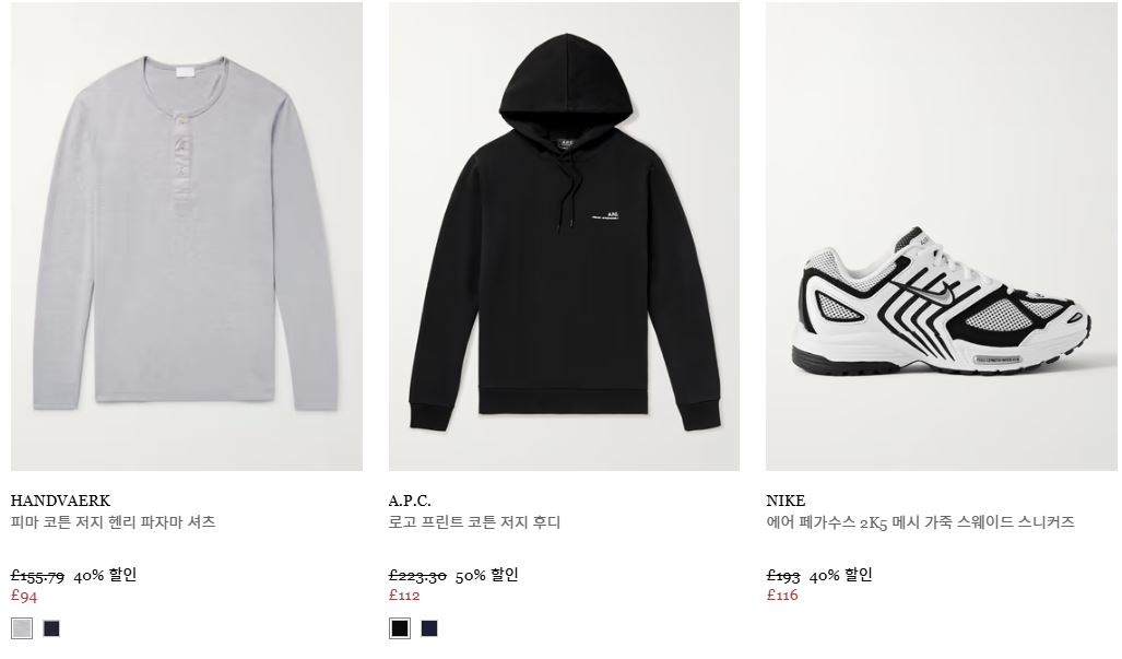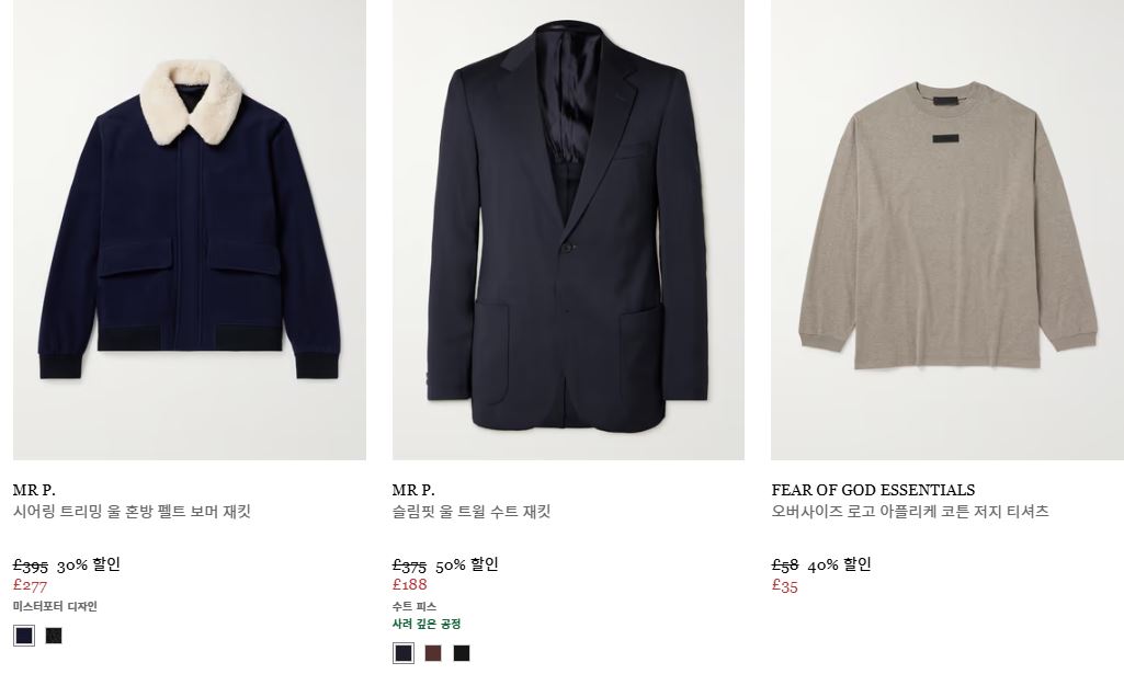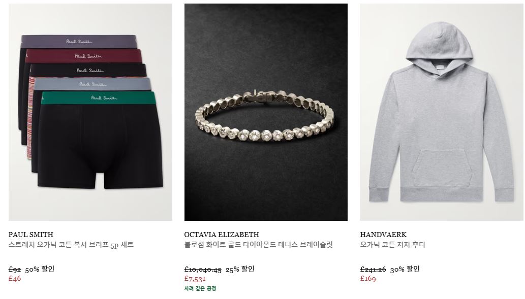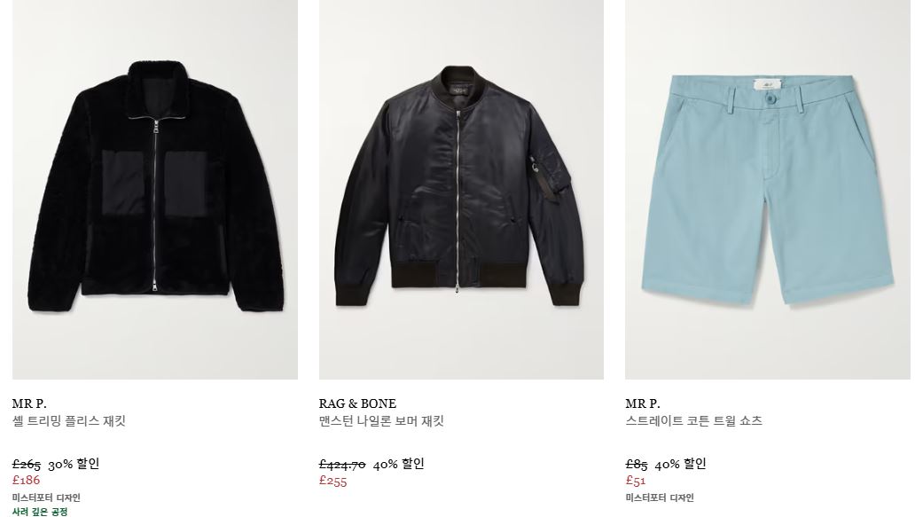 할인 품목 : 의류, 신발, 가방 등