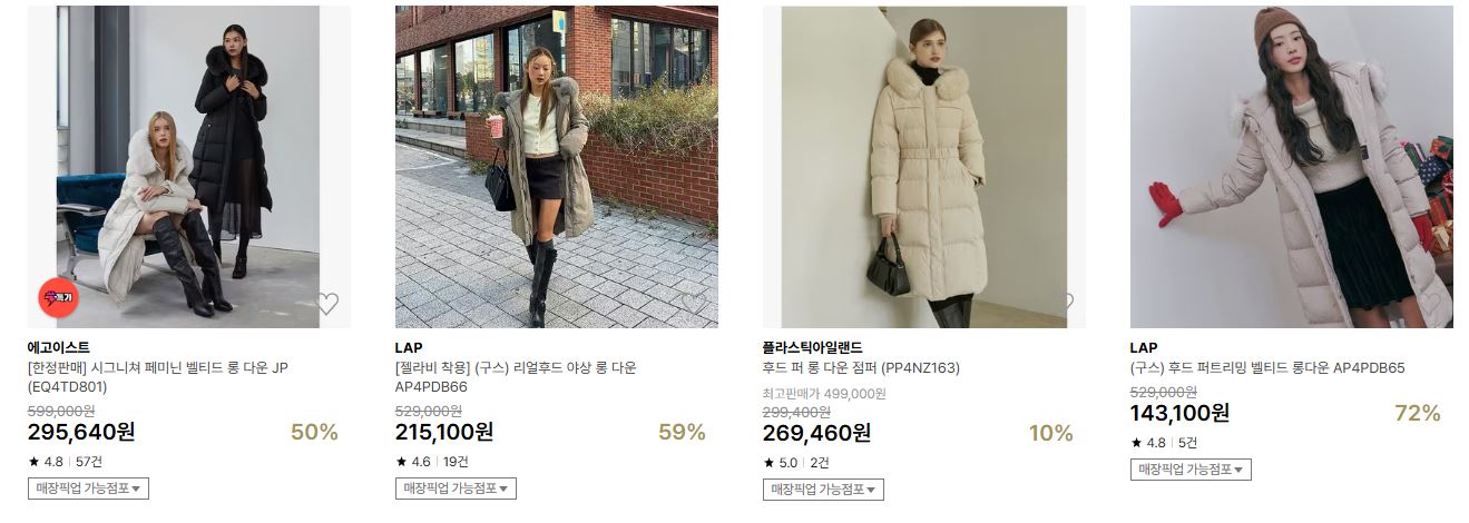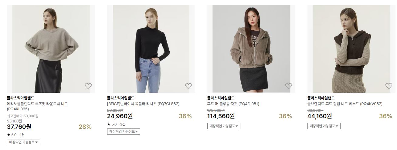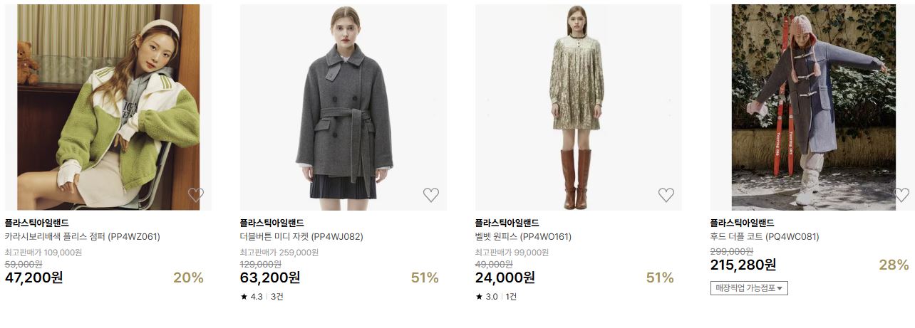할인 품목 : 점퍼, 코트, 니트, 티셔츠 등