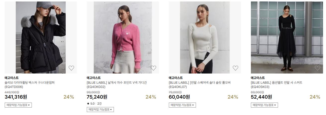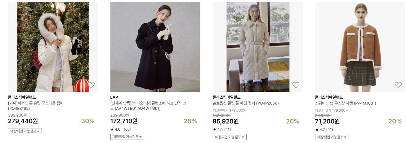 할인 품목 : 점퍼, 코트, 니트, 티셔츠 등