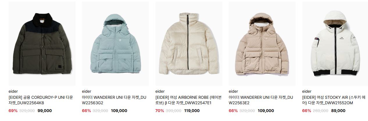 할인 품목 : 점퍼, 팬츠, 티셔츠 등